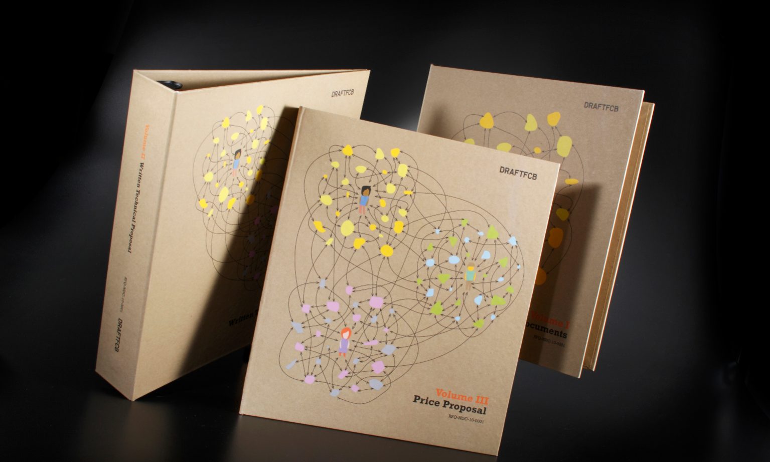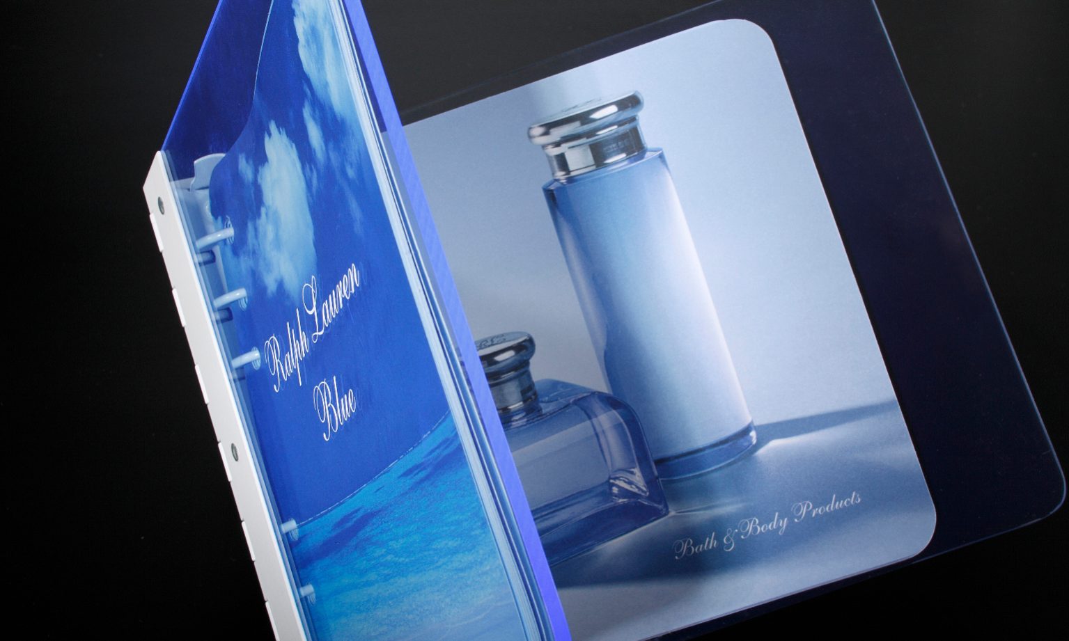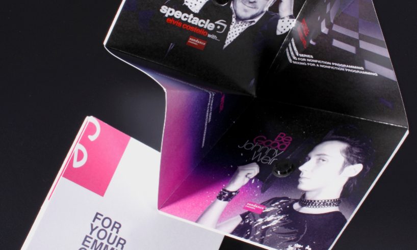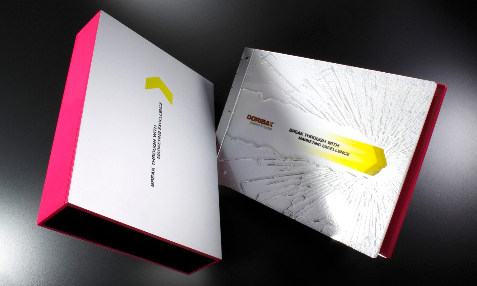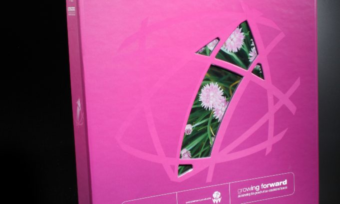 Folder with magnetic closure and clear foil stamp decoration made to house printed booklets.